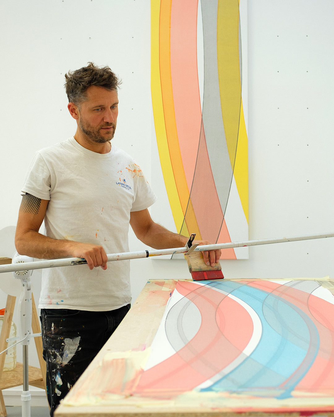 Tavar Zawacki’s Connected series reflects the paradox of our time: a society more connected online than ever, yet increasingly disconnected in lived experience. His paintings come to life through sweeping arcs of translucent color on a grand scale, stretching across multiple canvases and linking individual works into a greater whole. Each arc is part of a larger circle — a form that embodies connection, unity, and belonging.