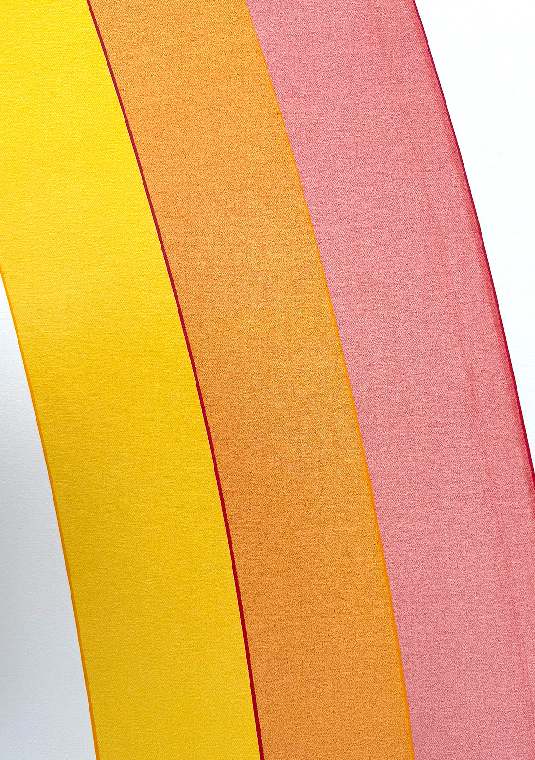 At the core of this practice is Zawacki’s guiding principle: 1 + 1 = 3. When two arcs of color meet, they do not simply sit beside one another; they connect, and in that connection new shapes and colors emerge. A third presence — carrying qualities of both yet belonging fully to neither — comes into being. The work makes visible what cannot exist alone: the generative power of connection.