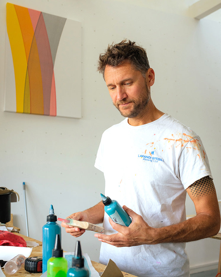 Having lived in seven countries and speaking four languages, Zawacki’s practice is shaped by a deep engagement with cultural diversity and global perspectives. These experiences inform his visual language, which centers on two-dimensional abstraction characterized by vibrant color, clean lines, and explorations of transparency in which overlapping hues create new forms. Influenced by Minimalism, Color Field painting, and Hard-Edge traditions, his work expands these legacies through a focus on connection, perception, and transformation.